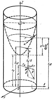 Рис. 4.2. Сосуд, вращающийся равномерно с угловой скоростью вокруг своей вертикальной оси