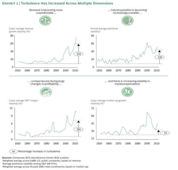 В 2012 году компания BCG3 выпустила исследование, в котором демонстрируется возросшая турбулентность во всех секторах экономики глобального мира: