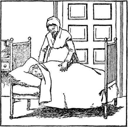 When she was shown upstairs to lay Her hat upon the bed, She saw a little basket there, With needles, wax and thread.