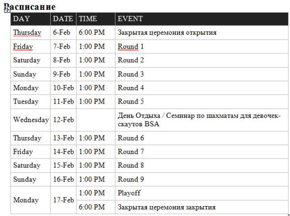 В 16 лет Карисса Ип быстро стала одной из лучших женщин-игроков в Америке. Известная своей креативностью и боевым духом за бортом, она участвует в турнире с рейтингом ФИДЕ 2418, чуть ниже своего пика рейтинга 2425.