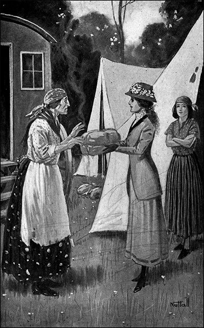 Dorothy left her parcels down in plain view of the gypsy woman, Melea, who, upon seeing them, stepped out from her hiding place and approached the girls.