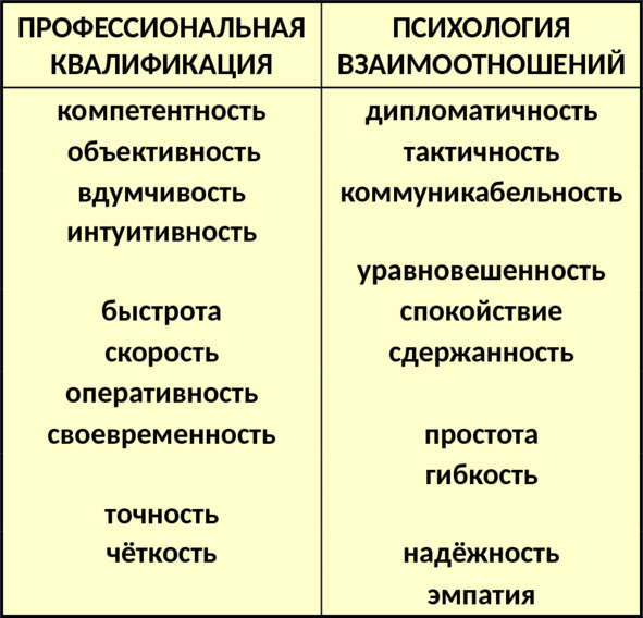 Обладатель специальности ревизор- из категории bee-to-bee, оказывающей услуги предприятиям присущи качества, при отсутствии которых клиент может ощутить недостаточную потребительскую ценность приобретаемого продукта. Если говорить о человеке, в чьи обязанности входит исполнение контрольных, надзорных и проверочных функций, то уровень его профессионализма обязан быть на высоте, как и психология его поведения, общения. В обратном случае незамедлительно последует недовольство, нарекание, жалобы и т.д и т. п.
