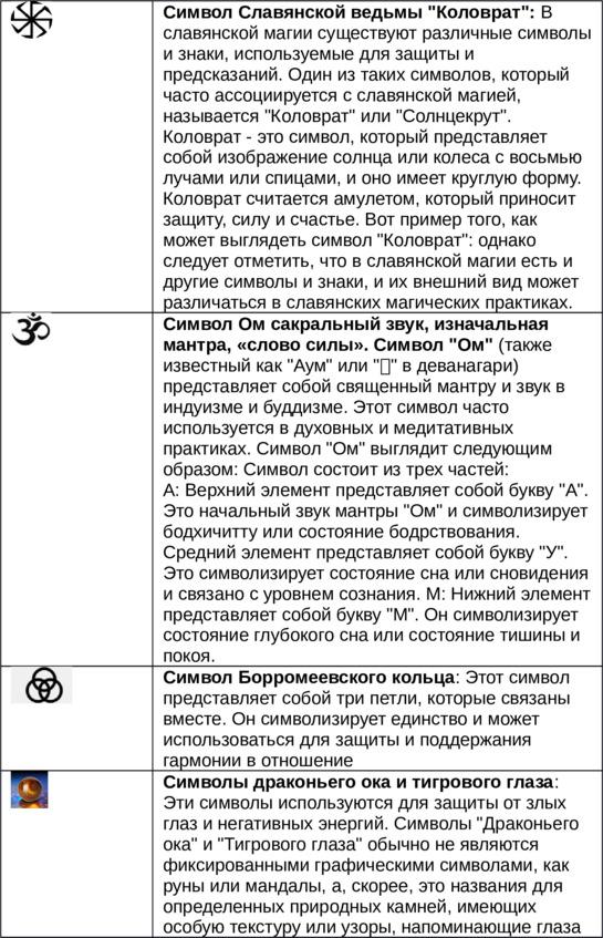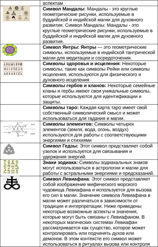 МАГИЧЕСКИЕ СИМВОЛЫ СПИСОК