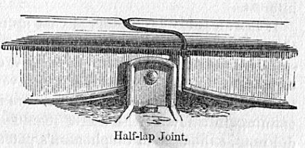 To bear the load of heavy engines run at high speeds, a much stronger and heavier road was found necessary; and shortly after the opening of the Liverpool and Manchester line, it was entirely relaid with stronger materials. Now that express passenger-engines are from thirty to thirty-five tons each, the weight of the rails has been increased from 35 lbs. to 75 lbs. or 86 lbs. to the yard. Stone blocks have given place to wooden sleepers; rails with loose ends resting on the chairs, to rails with their ends firmly “fished” together; and in many places, where the traffic is unusually heavy, iron rails have been replaced by those of steel.