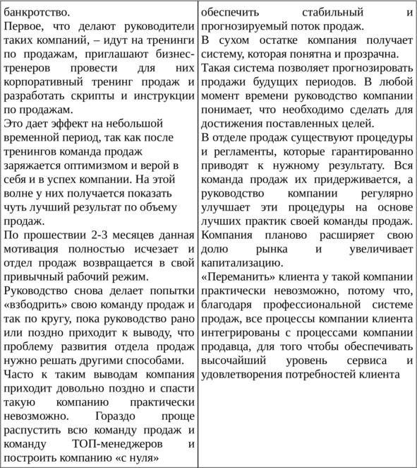 Если же вы ставите себе цель — достичь значительных перемен в продажах вашей компании, создать именно систему продаж, тогда придется поработать со всей книгой, изучить всю методику в комплексе. В таком варианте вы получите максимально возможный результат.