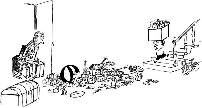 – Это что ещё за хлам?! – закричал папа. – Не думаешь же ты, что мы возьмём с собой этого плюшевого медведя, эти машинки, эти футбольные мячи и этот конструктор?