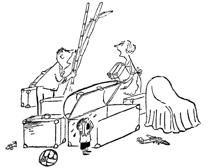 – Ты абсолютно права, дорогая, – сказал папа, – я не собираюсь тащить кучу плохо перевязанных свёртков. Возьмём три чемодана, не больше!
