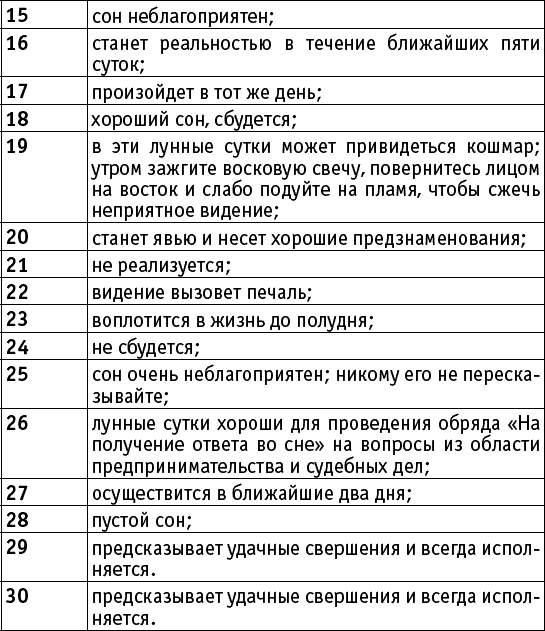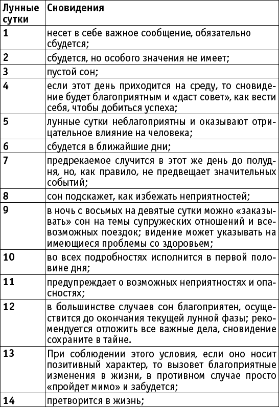 Также существует интерпретация снов по лунным дням.