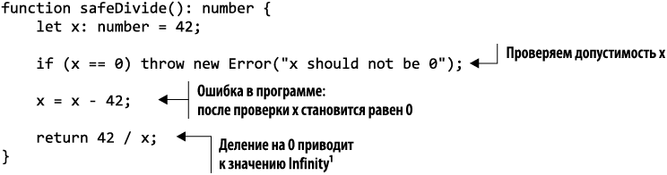 Как мы будем наблюдать на протяжении данной книги, проверки типов позволяют исключать целые классы ошибок при условии наличия достаточной информации. По мере роста сложности программного обеспечения должны обеспечиваться и лучшие гарантии правильности его работы. Мониторинг и тестирование могут продемонстрировать, ведет ли себя ПО в соответствии со спецификациями в заданный момент времени при определенных входных данных. Типы же обеспечивают более общее подтверждение должного поведения кода, независимо от входных данных.