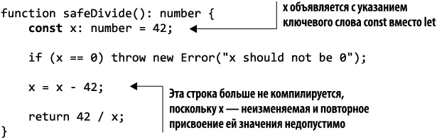 Изначально предполагалось, что примеры кода будут на языке C++. Система типов C++ обладает намного большими возможностями, чем у таких языков, как Java и C#. С другой стороны, C++ — сложный язык, и я не хотел искусственно ограничивать аудиторию книги, так что решил применить вместо него TypeScript. Система типов этого языка тоже располагает широкими возможностями, но его синтаксис более доступен, поэтому изучение примеров не доставит сложностей даже тем, кто привык к другим языкам. В приложении Б приведена краткая шпаргалка по используемому в данной книге подмножеству TypeScript.