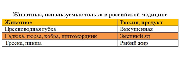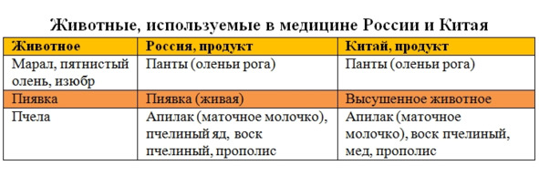 Вот несколько животных, которые применяются только в российской медицине. А в китайской не применяются.
