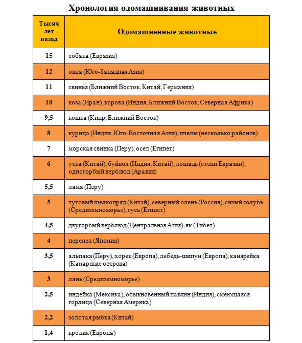 Первым домашним животным стал волк. Он был одомашнен в Южной Азии 10—15 тысяч лет назад (по некоторым современным данным — более 30 тысяч лет назад) и постепенно превращен в домашнюю собаку.