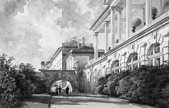 Л. Премацци. Камеронова галерея и Зубовский корпус. Середина XIX в.