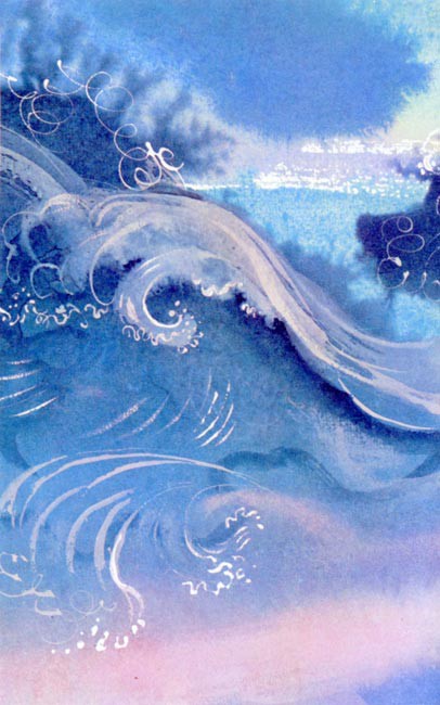 Но ничего уже не видел мамонт. Разбежался он, вонзил свои бивни в скалу, приподнял ее, чтобы бросить далеко в море, да вдруг скала сделалась тяжелой-тяжелой. Надломились от непомерной тяжести бивни и вместе со скалой рухнули в воду. Взревел тут от горя мамонт, протянул длинный хобот к воде, чтобы достать свои бивни, да так и застыл, окаменев навеки.