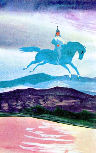 Сказав это, Харахан заскочил на коня и вместе со своей свитой поскакал к Саянам, где жил Улунтуй со своей сестрой Амар. Приехав к ним, он остановился около дверей юрты и громко крикнул: