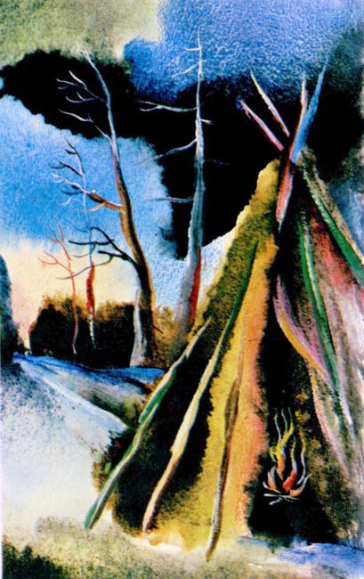 Он показал эвенку лук-палку. Эвенк позвал русского в чум. Угощал его. Гость подарил ему стреляющую палку. Ушел.