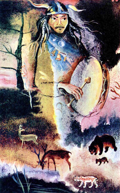 Так она и жила одна-одинешенька, не зная тоски, не испытав радости быть матерью. В конце концов злые языки зависти к ее красоте разнесли слух, что она великая шаманка. Она, дескать, способна делать то, чего не могут и помыслить другие знаменитые шаманы и шаманки. Она может разговаривать со зверями и птицами, может остановить ветер, по ее велению может идти дождь и снег, она может заставить солнце светить круглый год.