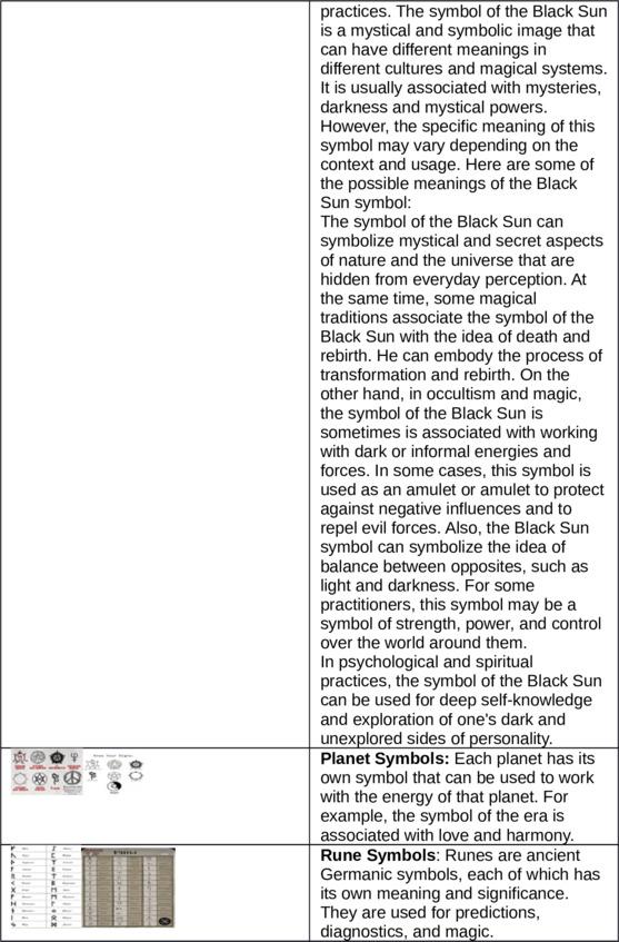 Magical signs and symbols can be incorporated into various rituals and rituals to enhance magical work. They serve as handles that the magician uses to control and direct energy. And in some magical traditions, symbols have a hidden meaning that is available only to those who have undergone certain rituals and training. This is a way to preserve and transfer knowledge within the tradition. It is very important to understand and know these magical symbols.