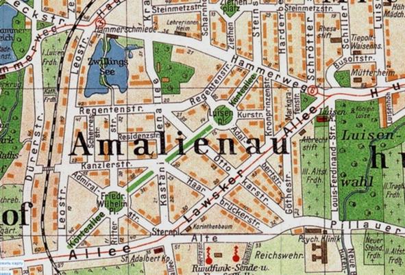 В Кёнигсберге воплощением этой, по сути утопической концепции, стали районы города — Ратсхоф и Амалиенау. Но если первый район строился преимущественно для рабочих, то второй — исключительно для богатых и сильных мира сего.
