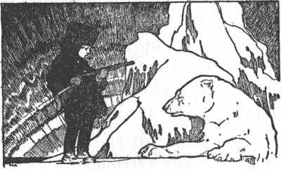 He always kept near the coast, he said, as he could find both bear and seal there. They had reached a very rough place, when, as they were going along, he stopped suddenly and pointed far off across the ice. Neither Tommy nor Johnny could see anything except ice and snow, try as they might. But they understood from his excitement that somewhere in the distance was a seal or possibly even a polar bear and, gun in hand, with beating hearts, they followed him as he stole carefully through the ice-peaks, working his way along, and every now and then cautioning them to stoop so as not to be seen.