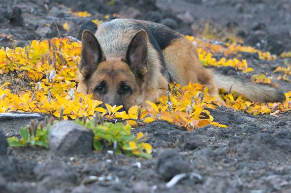Ну да! За маленьким щеночком НЕМЕЦКОЙ ОВЧАРКИ!