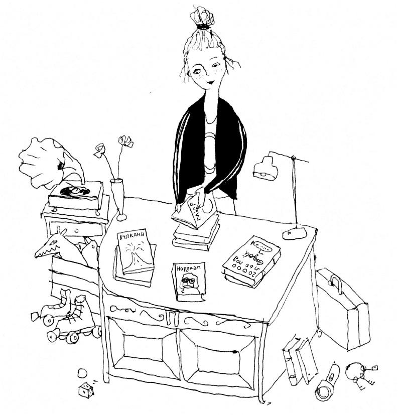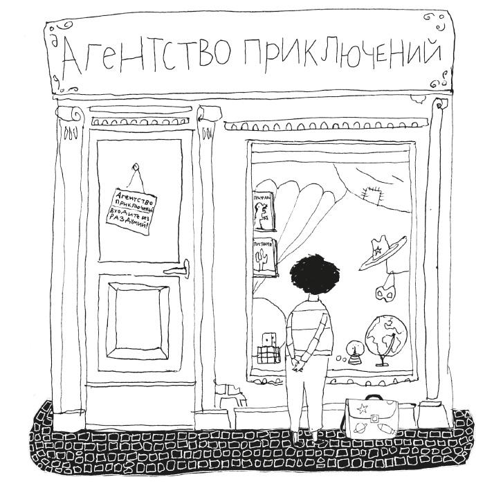 Витрину украшало множество мелких предметов — прямо глаза разбегались: стеклянные шары со снегом, мячи, кубики Рубика, книжки, маски и куча всего ещё. Посреди всего этого висел рваный парашют. Что бы это значило? Этот магазин явно был необычный. Табличка на двери гласила: