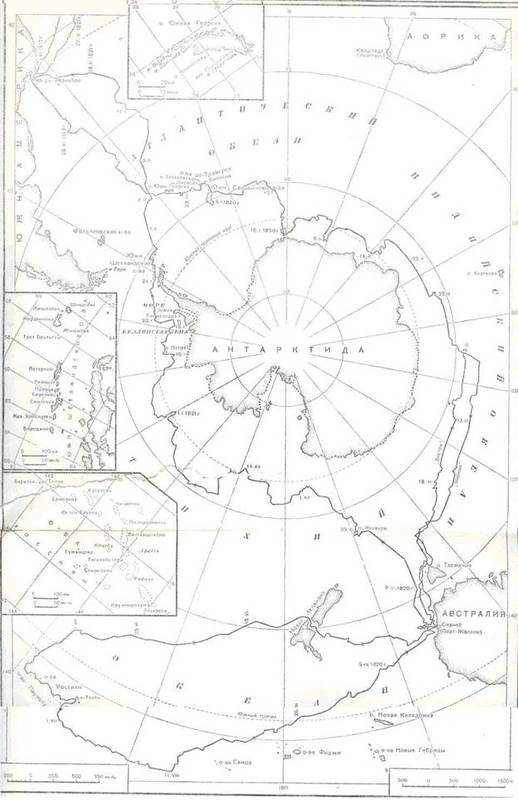 Таким образом, роковая ошибка Кука имела своим следствием то, что в конце XVIII и в начале XIX в. господствовало убеждение, что Антарктиды вообще не существует, а все районы, окружавшие Южный полюс, представлялись тогда на карте «белым» пятном. В таких условиях была задумана первая, русская антарктическая экспедиция.