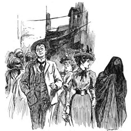 'Ah, I forgot I hadn't explained to you! Listen here, dearest—quick; I can waste no words over it. I said just now I had no friends in the world but you and Georgey. That's not true, for dear old Partab has stuck to me nobly. When all my English friends fell away, the Rajput was true to me. He arranged all this; it was his own idea; he foresaw what was coming. He urged me yesterday, just before the verdict (when he saw my acquaintances beginning to look askance), to slip quietly out of court, and make my way by unobtrusive roads to his house in Curzon Street. There, he darkened my face like his, and converted me to Hinduism. I don't suppose the disguise will serve me for more than a day or two; but it will last long enough for us to get safely away to Scotland.'
