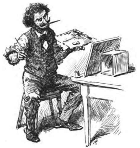 I paused and reflected. 'I am here in London,' I answered, gazing rapt at the ceiling; 'London, whose streets are paved with gold—though it looks at first sight like muddy flagstones; London, the greatest and richest city in the world, where an adventurous soul ought surely to find some loophole for an adventure. (That piece is hung crooked, dear; we shall have to take it down again.) I devise a Plan, therefore. I submit myself to fate; or, if you prefer it, I leave my future in the hands of Providence. I shall stroll out this morning, as soon as I've "cleaned myself," and embrace the first stray enterprise that offers. Our Bagdad teems with enchanted carpets. Let one but float my way, and, hi, presto, I seize it. I go where glory or a modest competence waits me. I snatch at the first offer, the first hint of an opening.'