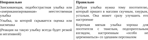 Стоит также сказать о том, что магазин — место скопления большого количества людей. И мы, персонал магазина, лично отвечаем за то, чтобы это место было благоприятным во всех отношениях, чтобы обстановка в нем вызывала только положительные эмоции. Можно перефразировать: я искренне желаю вам, чтобы в результате вашей работы с персоналом ваш магазин был местом скопления большого количества довольных людей, довольных покупателей. А довольный человек передаст свое хорошее настроение дальше и дальше, и в конце концов его хорошее настроение к вам же и вернется.