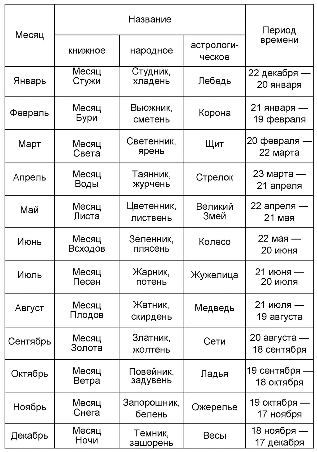 Выстраивая таблицу соответствия месяцев, надо помнить, что год в Эвиале, во-первых, короче земного на пять дней и начинается на восемь суток раньше. 22 декабря по нашему счёту является первым днём нового года по-эвиальски.