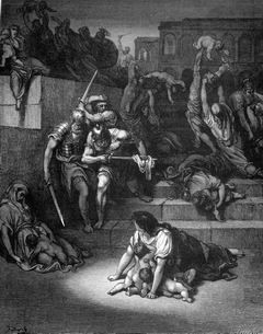 16 Тогда Ирод, увидев себя осмеянным волхвами, весьма разгневался, и послал избить всех младенцев в Вифлееме и во всех пределах его, от двух лет и ниже, по времени, которое выведал от волхвов.