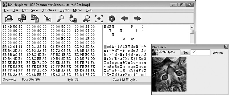 Рис. 1.2. Окно программы Hexplorer – открыт файл рисунка в формате BMP