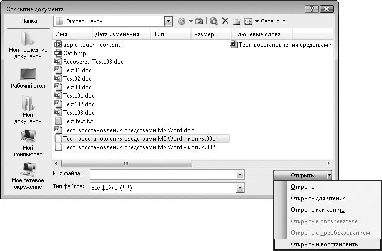 Восстановление документов средствами Microsoft Word