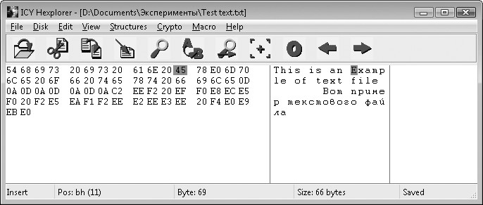 Рис. 1.1. Окно программы Hexplorer – открыт текстовый файл