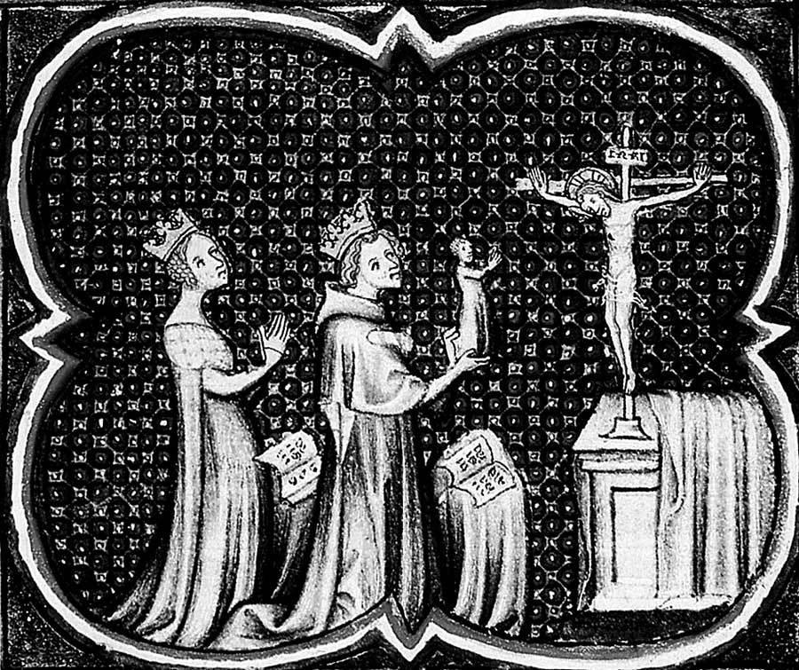 Людовик VII и Алиенора молят Господа о даровании сына. Средневековая миниатюра. Фото репродукции