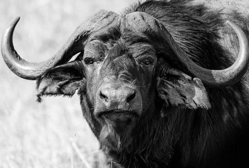 Хвост длинный, с продолговатой жесткой кисточкой на конце. Из чувств особенно хорошо развито обоняние, слух у индийского буйвола тоже очень острый, но зрение посредственное. Кормится животное главным образом на рассвете и вечером, иногда ночью. Предпочитает ростки крупных злаковых растений, которые легко затянуть в рот длинным шершавым языком, чтобы оторвать, прижав нижними резцами. Верхних резцов, как у прочих быков, у него нет. Как у всех жвачных, пища сначала накапливается в первом отделе желудка – рубце, затем в виде полупереваренной жвачки отрыгивается и снова пережевывается перед окончательным заглатыванием.