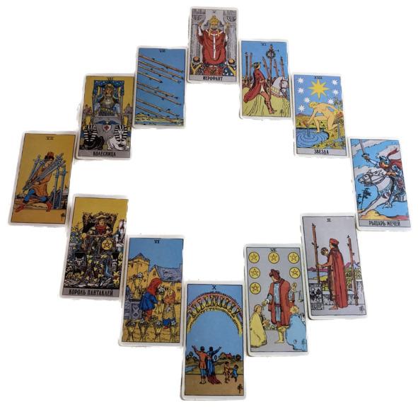 Итак вы выложили 12 карт, а тринадцатая карта- это рекомендация по проживанию года в ключе «Как мне себя вести в неудобном моменте?». Об этом я расскажу отдельно, всё по порядку.