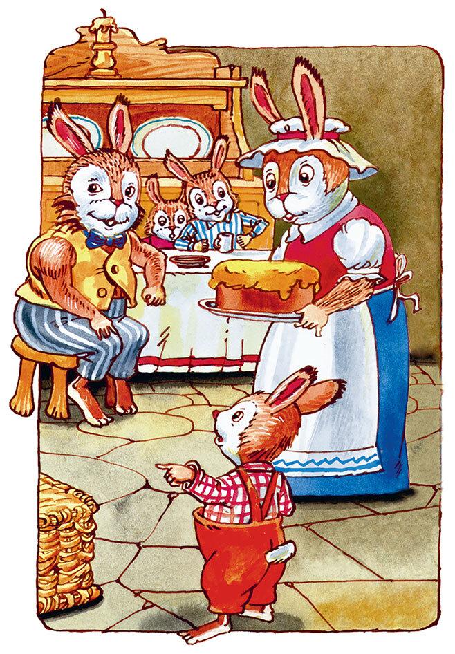 Тогда Кролик живо – детишек за уши и усадил их, а сам с Матушкой Крольчихой – у дверей: ждут Братца Лиса.