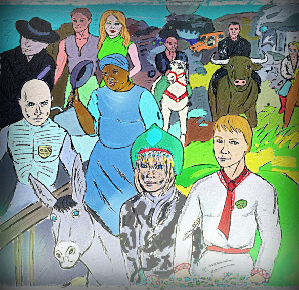 Около самой большой палатки толпился народ. Мы остановились шагах в пяти от толпы и спешились. Тишка сразу поплёлся к кусту сирени и стал обрывать листья. Ницше сказал «Йа-йа!» и встал рядышком с ним. Никто их теперь не тронет — бычка и его хозяина знают все, а ослик под защитой рогатого.