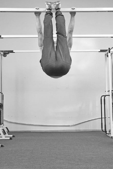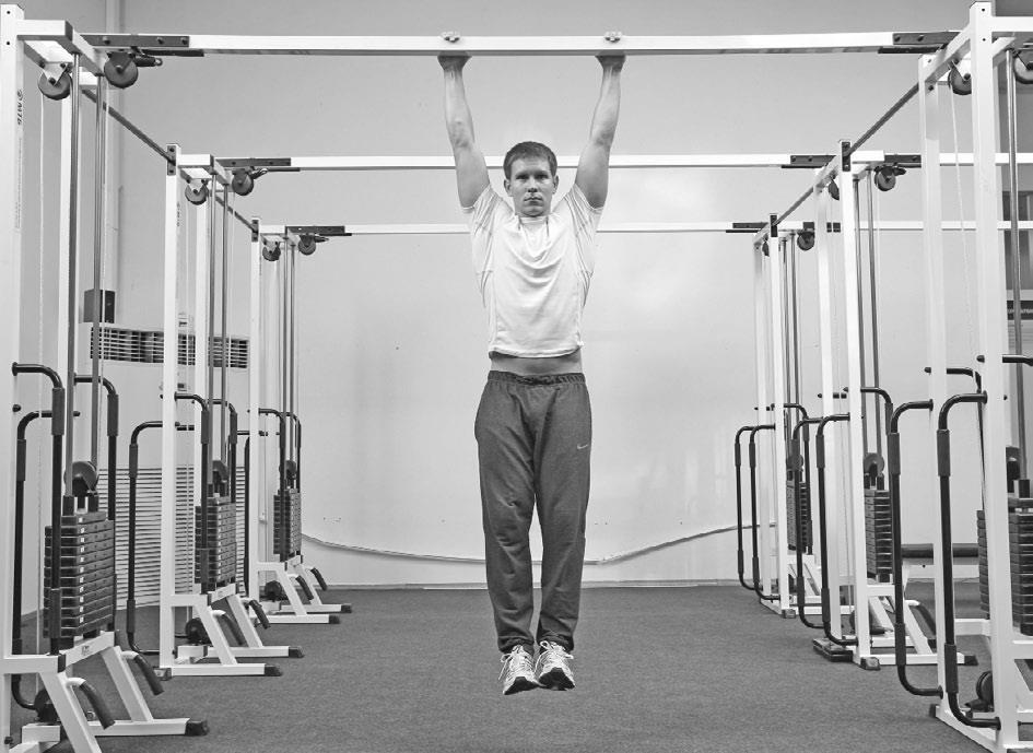 Хочется отметить, что боли в спине могут возвращаться после очередного длительного сидения, но при выполнении профилактических упражнений с каждым разом боли будут снижать свою интенсивность и остроту. Если есть возможность перед длительной поездкой позаниматься на турнике, то одно из лучших упражнений – подъем прямых или согнутых в коленях ног до касания носками перекладины («полусклепка») (фото 3 абв). Ноги поднимаются на выдохе, несмотря на боль. Больно делать только первые 2–3 движения. Хотелось бы к этому добавить, что отлично помогает снять боль баня или сауна по правилам русской бани после упражнений, и не сама по себе, а с обязательным охлаждением тела до захода в парилку и обязательным окунанием с головой после выхода из парилки.