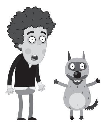 Говорящий Волк. Возраст неизвестен. Волк часто позиционирует себя как уставшего от жизни профессионала. Спокойный, ироничный, редко теряет самообладание, эгоистичен. Волк легко помещается в различные небольшие замкнутые пространства: гардеробы, дупла деревьев и т. п. Через них он перемещается в параллельный мир, где занимается решением проблем самых необычных существ. В отношении Пети Волк нетерпелив и настойчив, не всегда понимает его обстоятельства и по наивности может отрывать Петю от учебы и домашних дел.