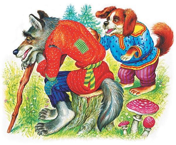 Толстый и сытый дворовый пёс, разорвав верёвку, побежал за город прогуляться. В соседнем перелеске он встретился с волком, да таким худым, поджарым – кости да кожа. Сытый пёс взглянул на него более с сожалением, чем со злостью. Ободрённый таким приёмом, волк пустился в разговор с собакой и стал ей жаловаться на своё худое житьё. Сжалилась собака над волком и говорит ему: