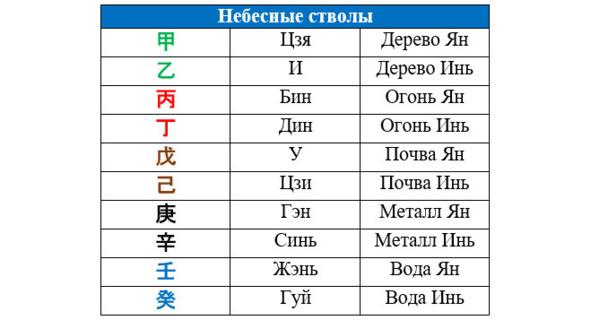 Пять Янских стволов происходят из природы и принадлежат к преднебесному (внутреннему, врождённому), а пять Иньских стволов — связаны с человеческой деятельностью и относятся к посленебесному (внешнему, приобретённому). Огонь Ян рождается в Тигре — это вполне ясно.