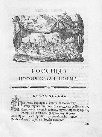 [31] Первая страница первого издания поэмы Хераскова «Россиада». 1779 год. Российская государственная библиотека.
