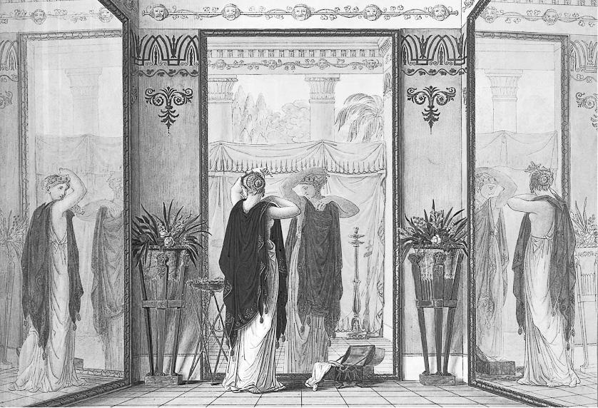 [32] Душенька любуется собою в зеркало. Иллюстрация Фёдора Толстого к «Душеньке» Ипполита Богдановича. 1821 год. Государственная Третьяковская галерея.