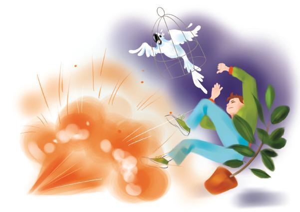 И тут мощно рвануло! Пламя ударило во все стороны. Гришу отшвырнуло к стене. Зазвенели осколками окна. На лабораторном столе загудела, плюясь искрами, огненная лужа. Пламя с треском перекинулось на шторы. Истерически захохотал какаду и тут же умолк, забившись в клетке. Кабинет заволокло дымом.