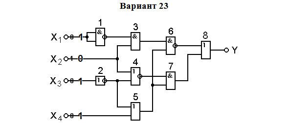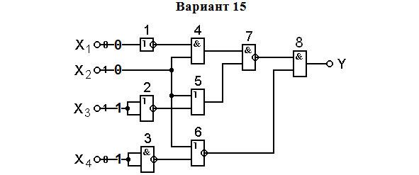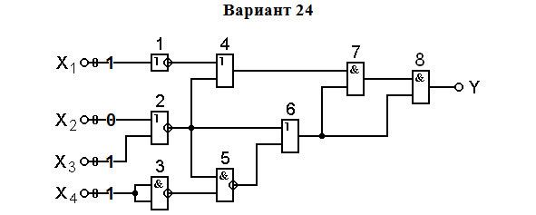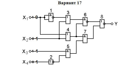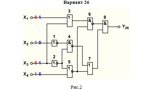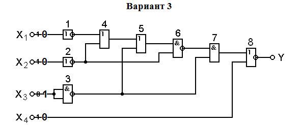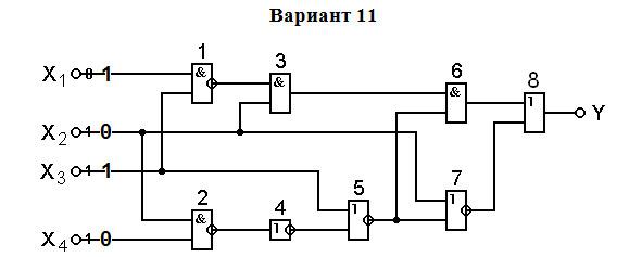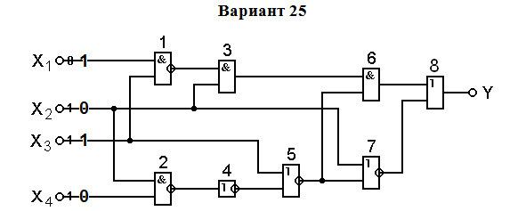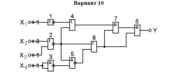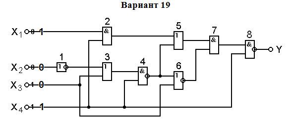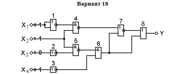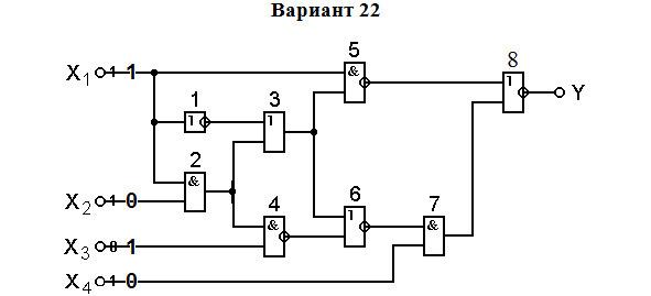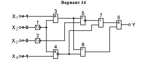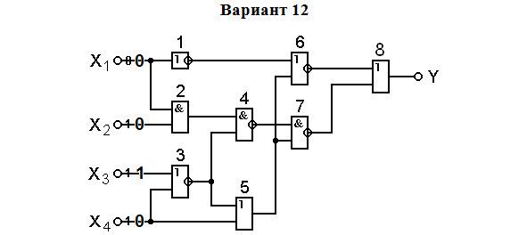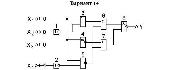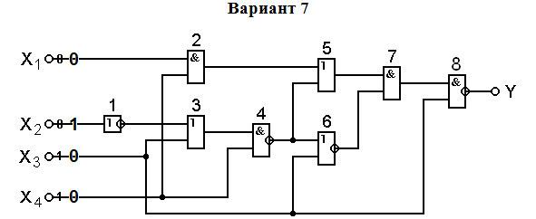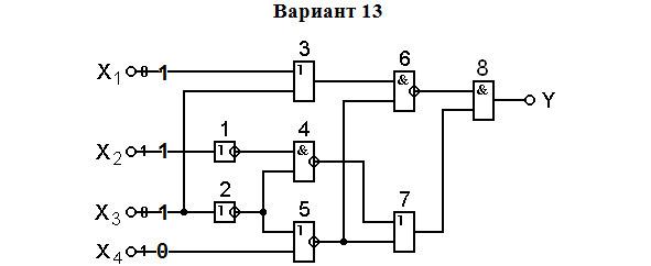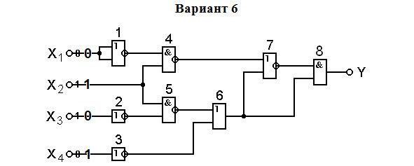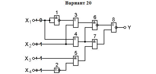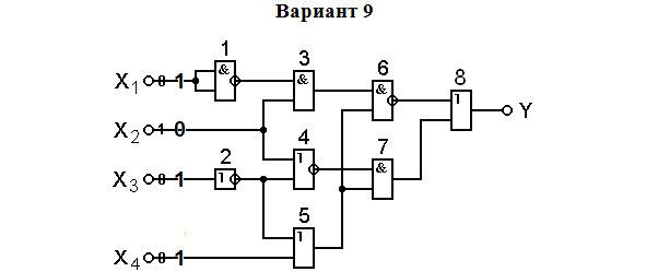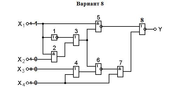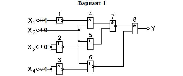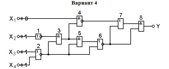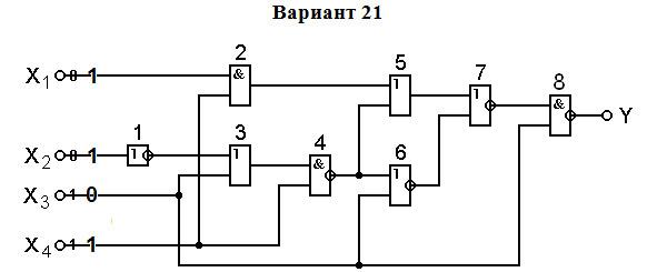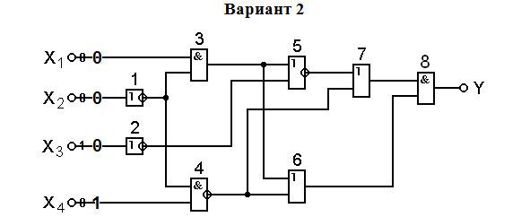 2. Выполнить анализ работы заданной в соответствии со своим вариантом схемы в статическом режиме по заданным значениям входных сигналов: указать значения сигналов на входах и выходах всех элементов.
