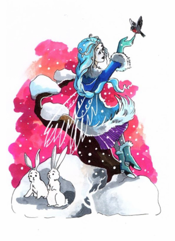 К счастью пошёл снег и укрыл все следы. Волки потеряли её.