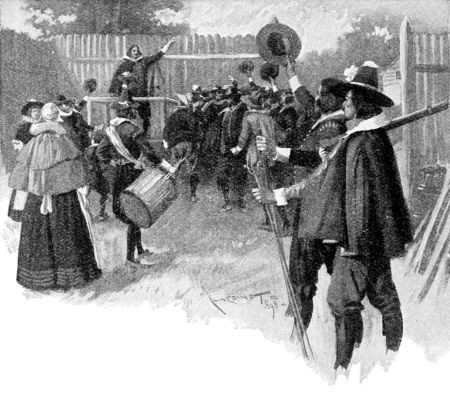 Besides the American patriots, foreigners were helping Washington with all their might. Among these was the Prussian officer, Baron Steuben, who knew no English, and therefore brought over an interpreter with him. According to one story, this interpreter made an idle bet to kiss the first Yankee girl he met. Landing at Portsmouth, this man won his wager by stepping up to a pretty girl, bowing politely, and begging permission to kiss her, saying: "Before leaving my native land to fight for American freedom, I made a vow to ask, in earnest of victory, a kiss from the first lady I should meet." The story adds that the young lady accepted the kiss, saying she could not refuse so small a favor to a man who had come to fight, and if necessary, to die, for her country.